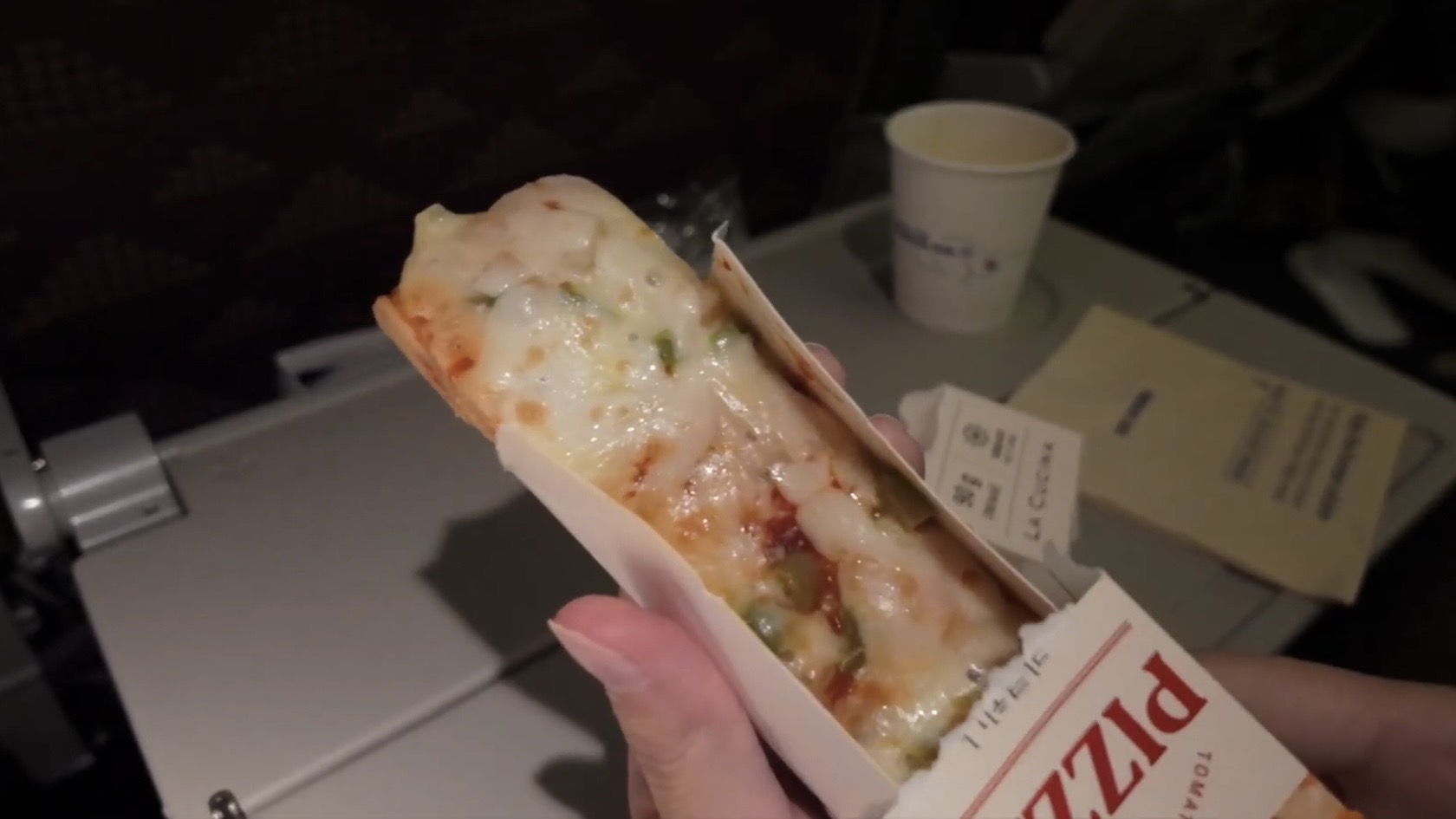 軽食はピザ。温かくてもっちり美味しい。